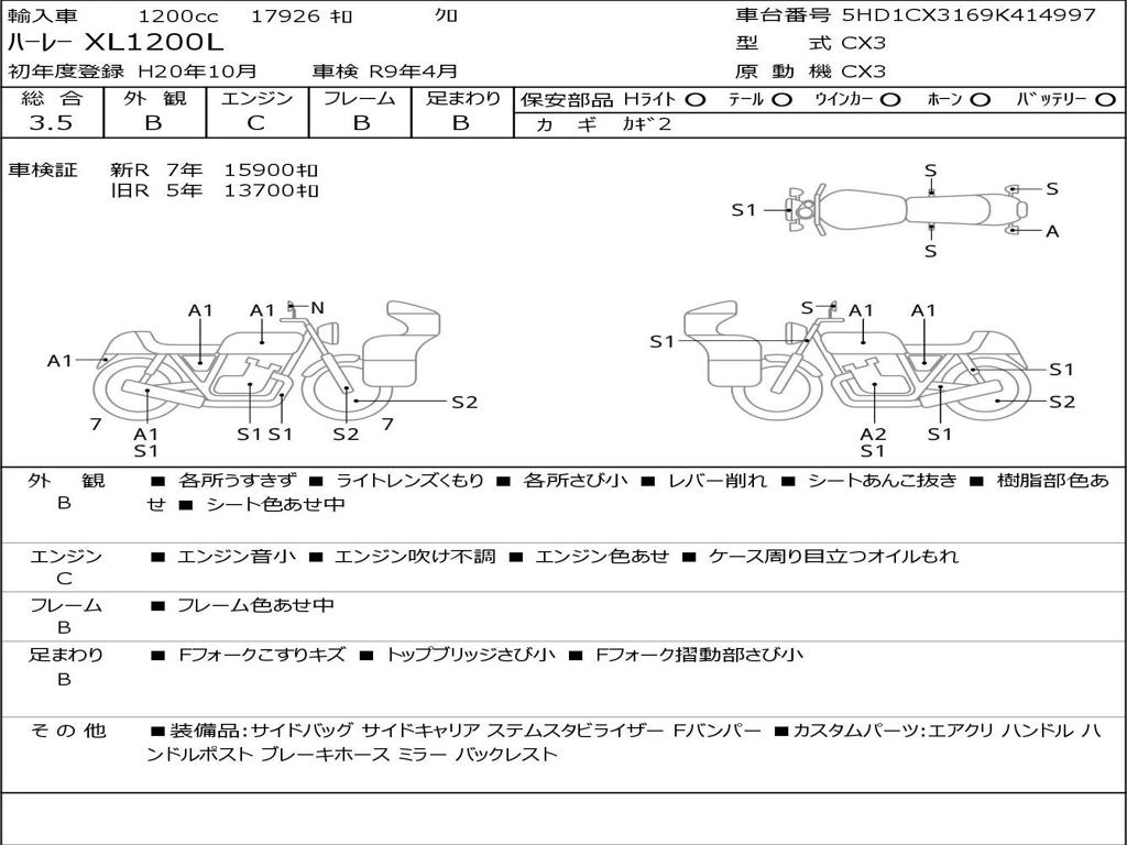 | Номер рамы / VIN | 5HD1CX3169K414997 |