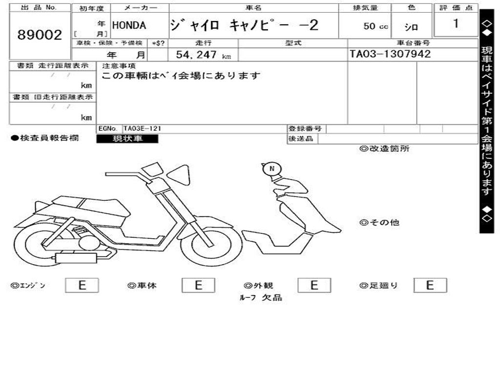 | Номер рамы / VIN | TA03-1307942 |