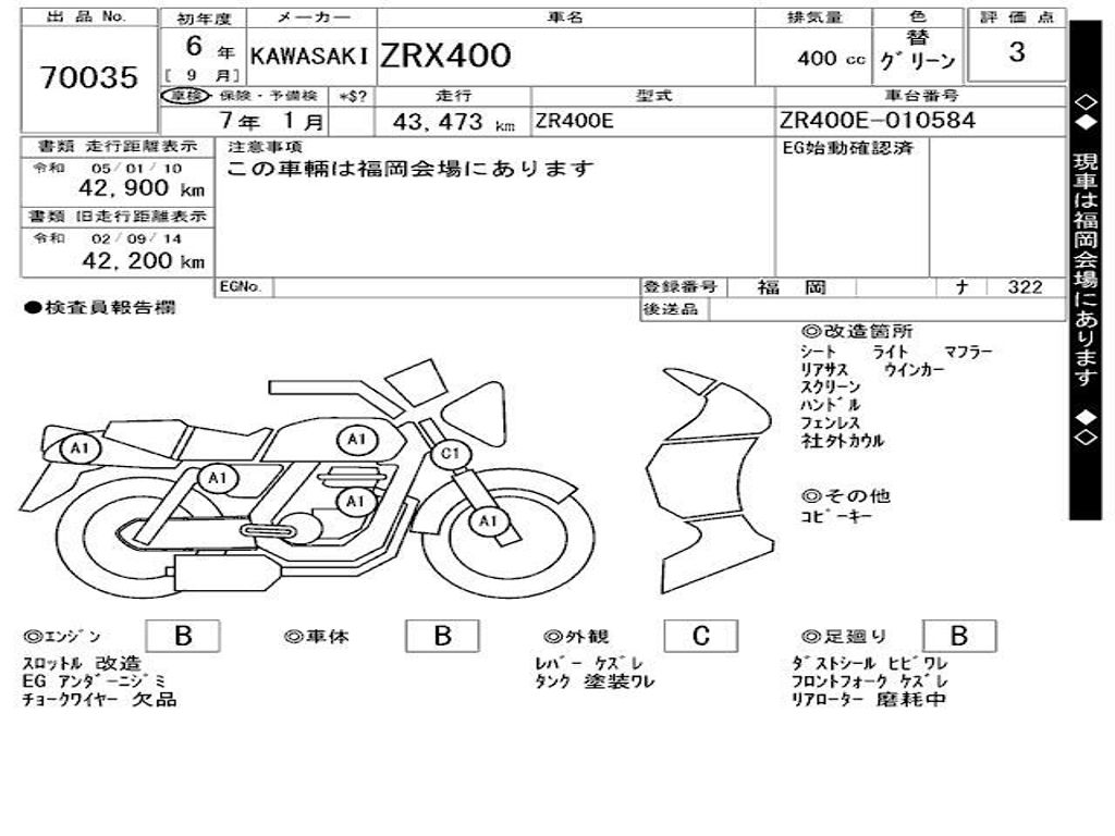 | Номер рамы / VIN | ZR400E-010584 |