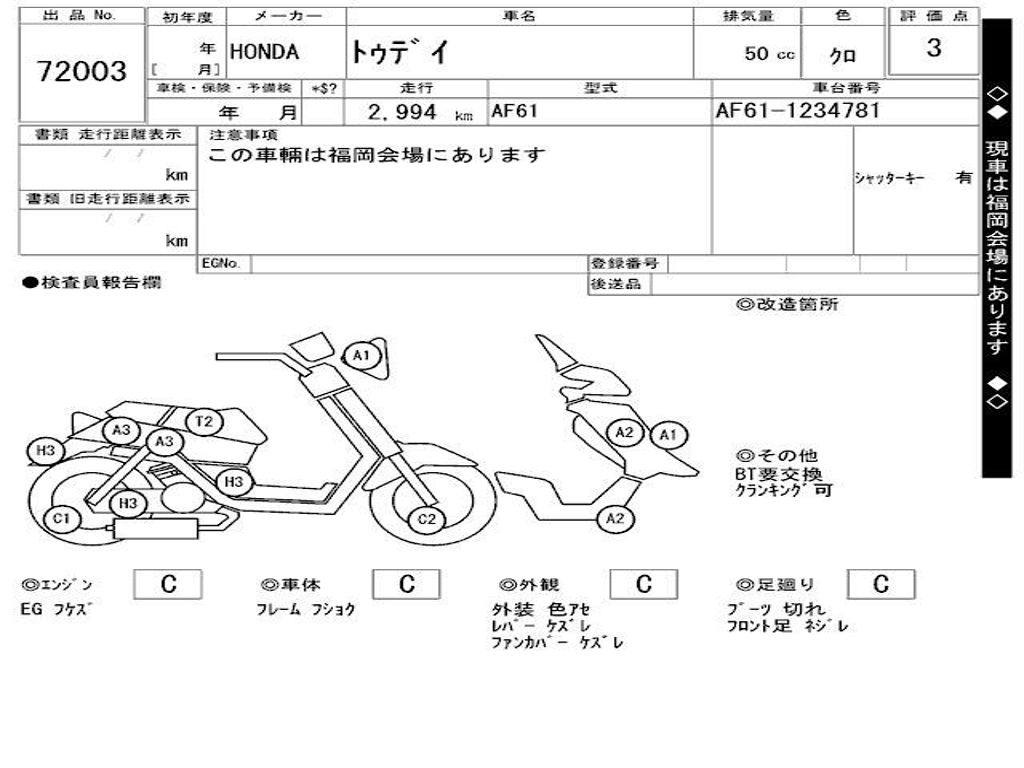 | Номер рамы / VIN | AF61-1234781 |