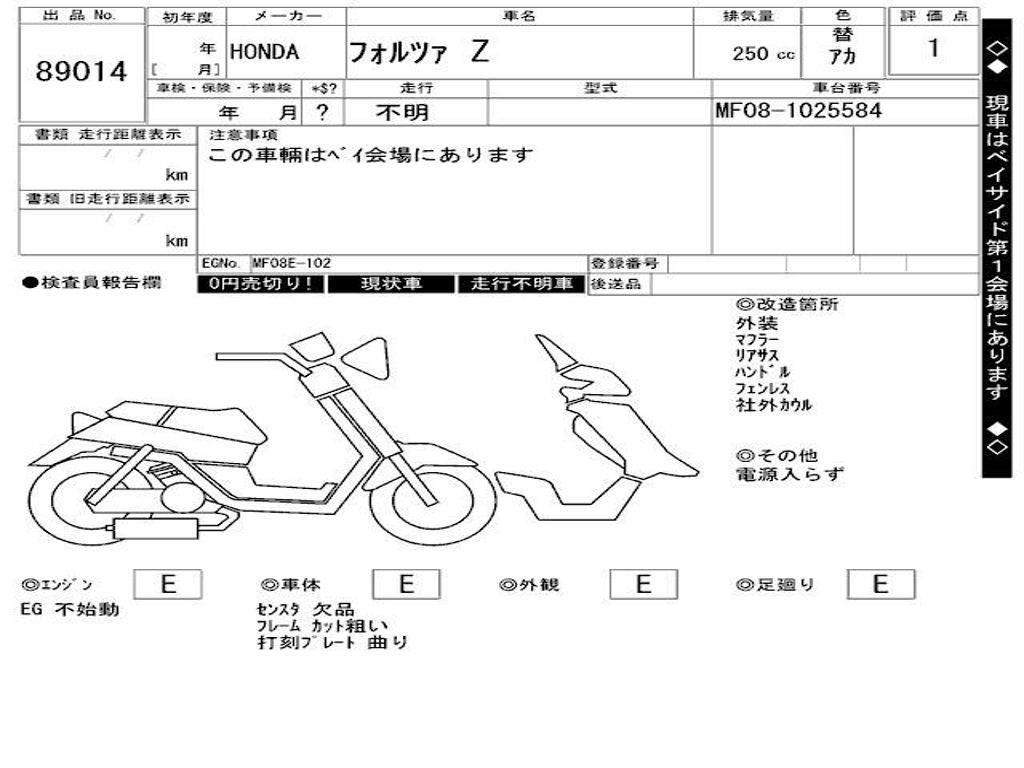 | Номер рамы / VIN | MF08-1025584 |