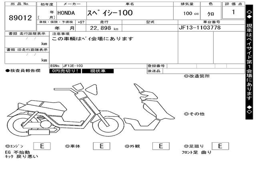 | Номер рамы / VIN | JF13-1103778 |