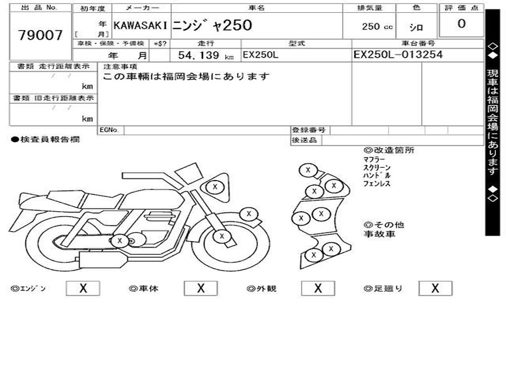 | Номер рамы / VIN | EX250L-013254 |