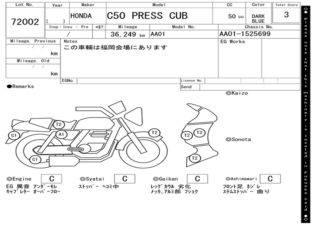 | Номер рамы / VIN | AA01-1525699 |