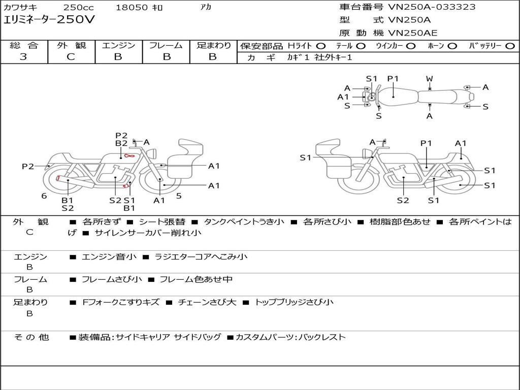 | Номер рамы / VIN | VN250A-033323 |