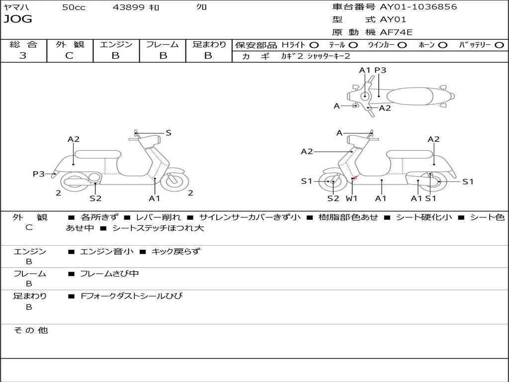 | Номер рамы / VIN | AY01-1036856 |
