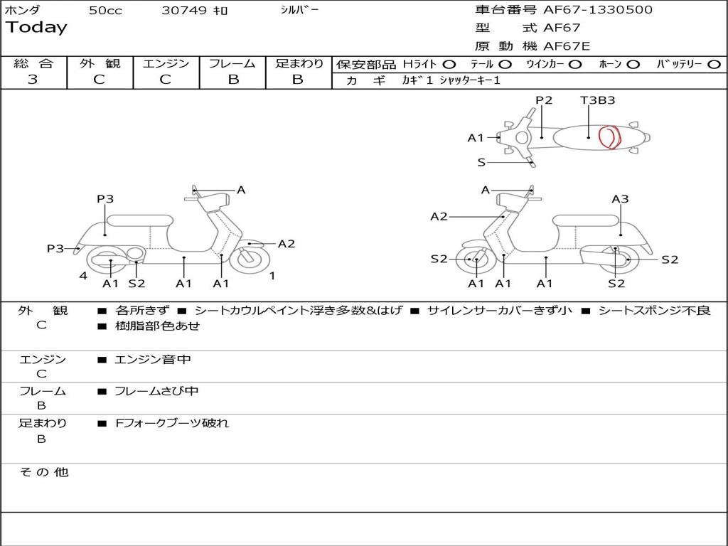| Номер рамы / VIN | AF67-1330500 |