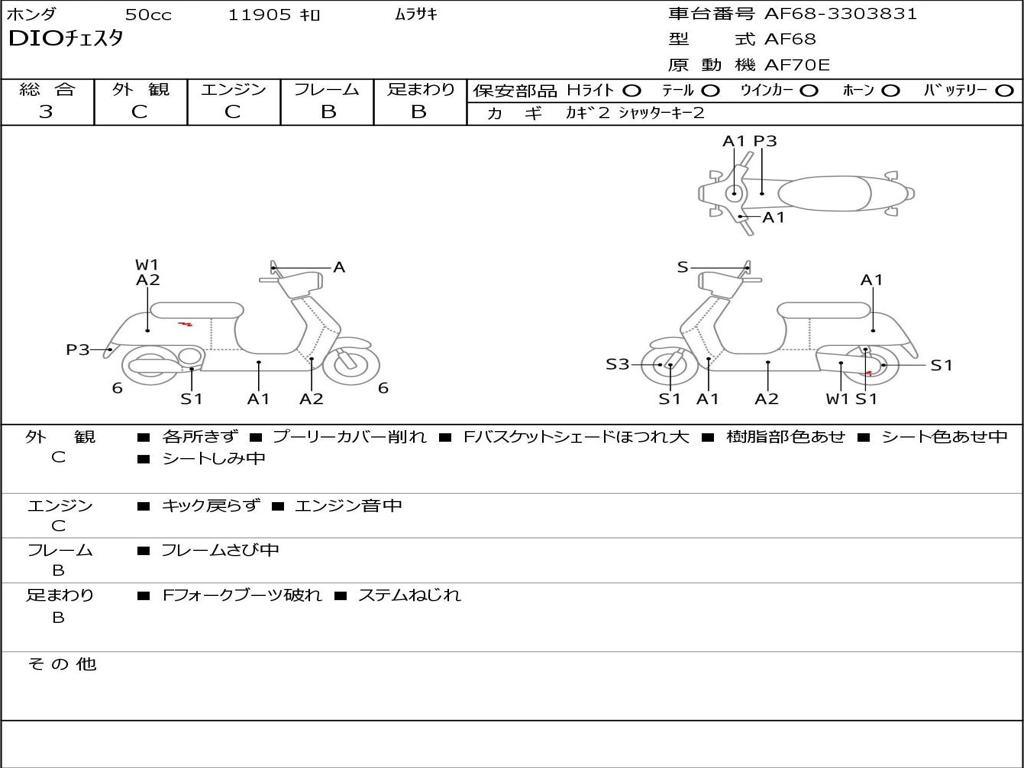 | Номер рамы / VIN | AF68-3303831 |