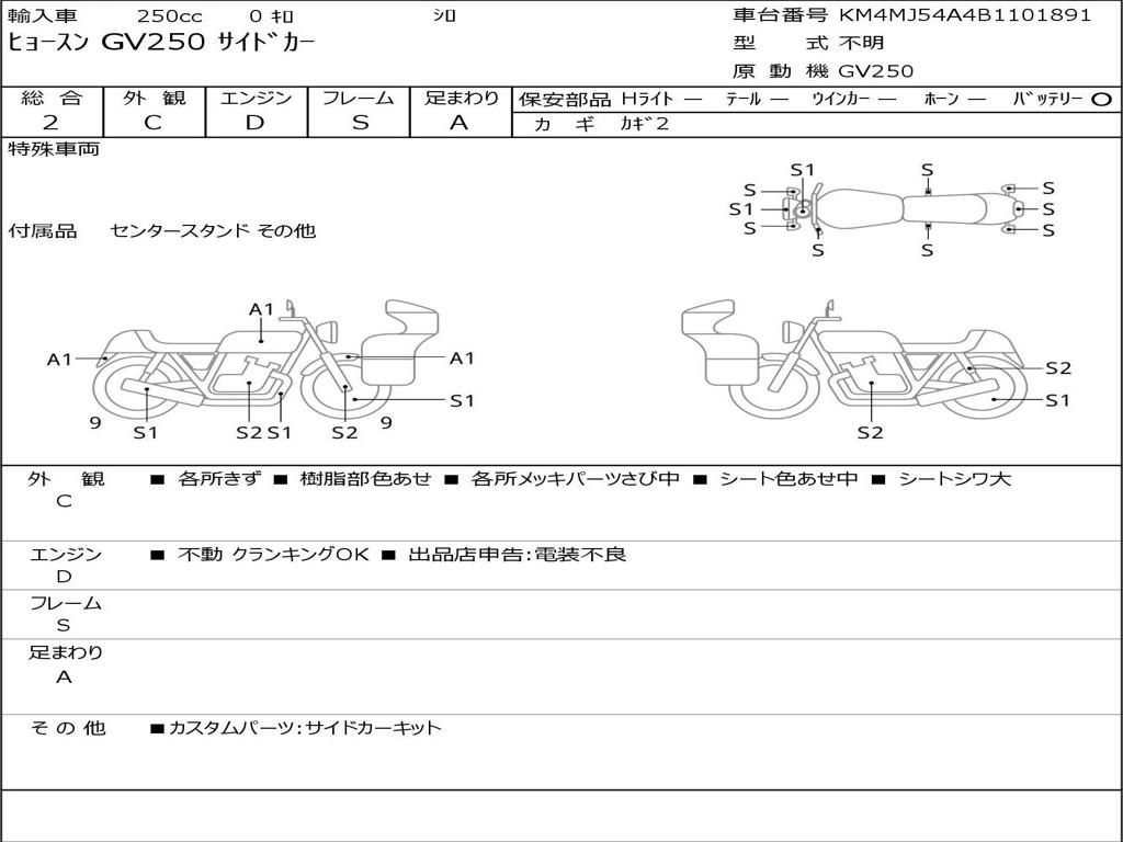 | Номер рамы / VIN | KM4MJ54A4B1101891 |