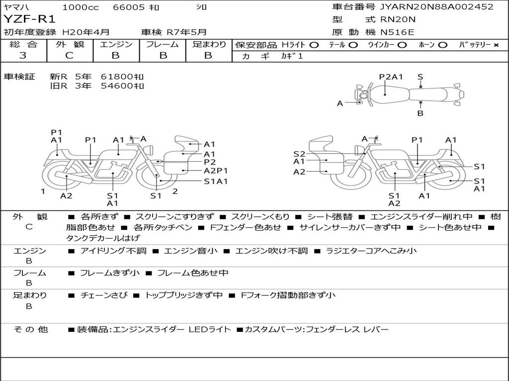 | Номер рамы / VIN | JYARN20N88A002452 |