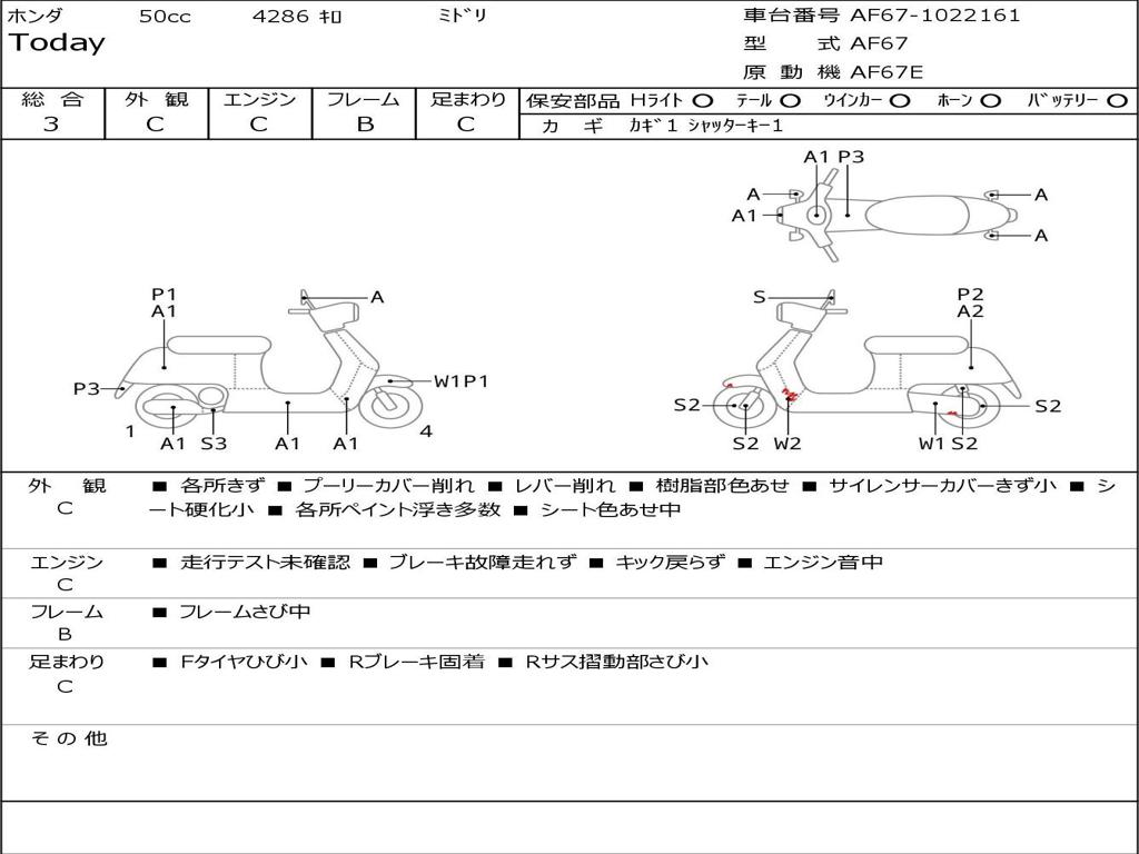 | Номер рамы / VIN | AF67-1022161 |