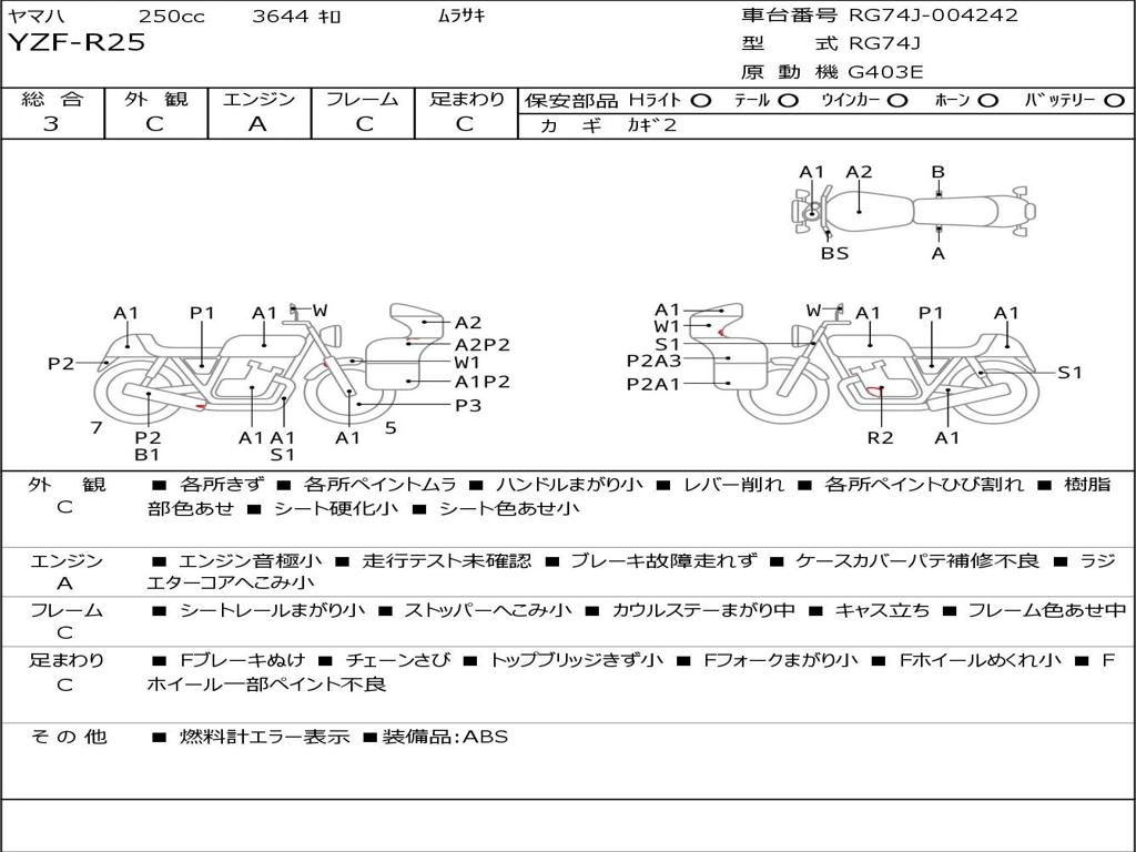 | Номер рамы / VIN | RG74J-004242 |