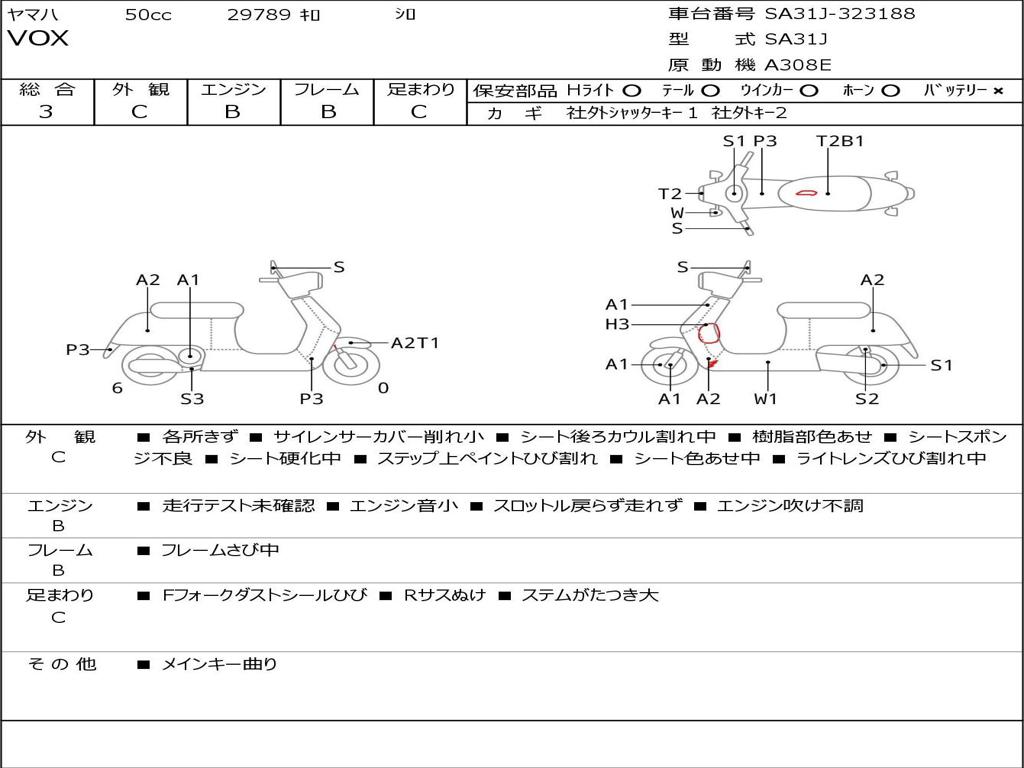 | Номер рамы / VIN | SA31J-323188 |