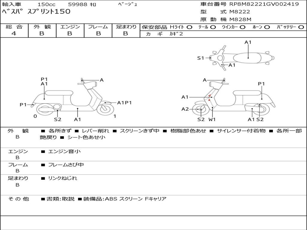 | Номер рамы / VIN | RP8M82221GV002419 |