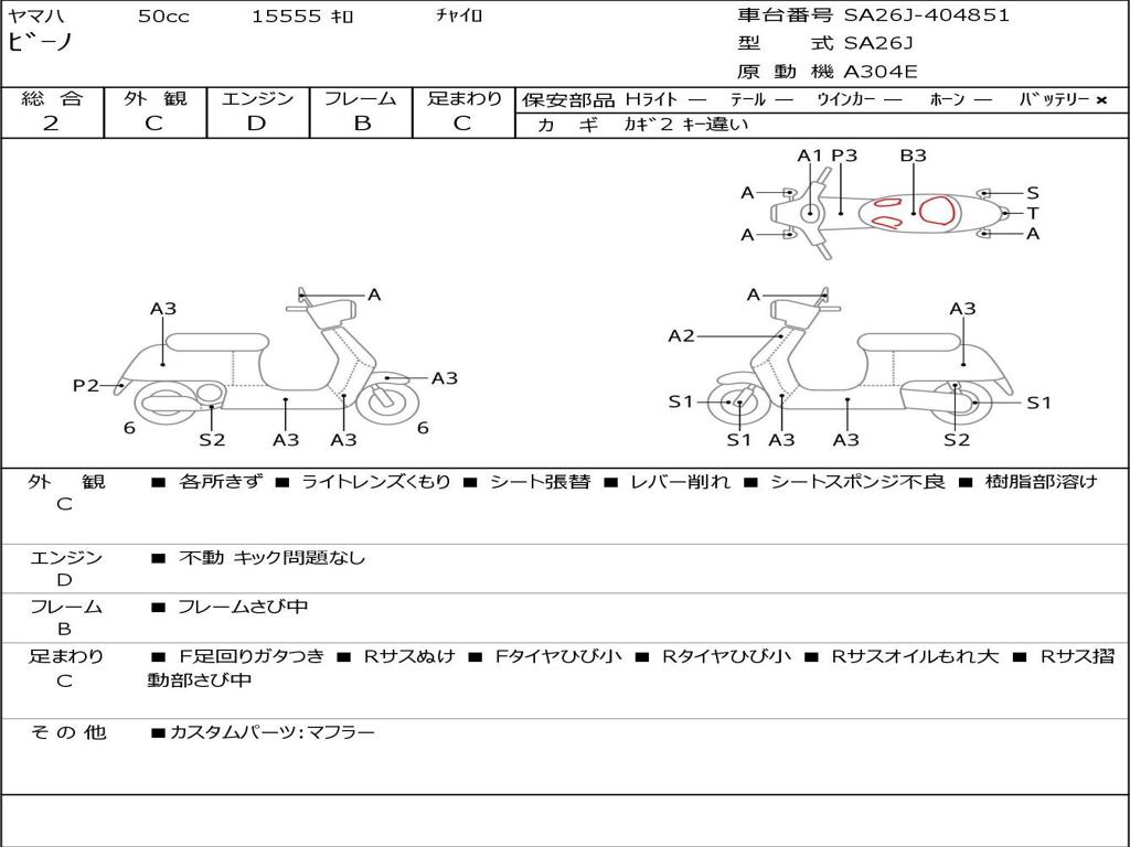 | Номер рамы / VIN | SA26J-404851 |