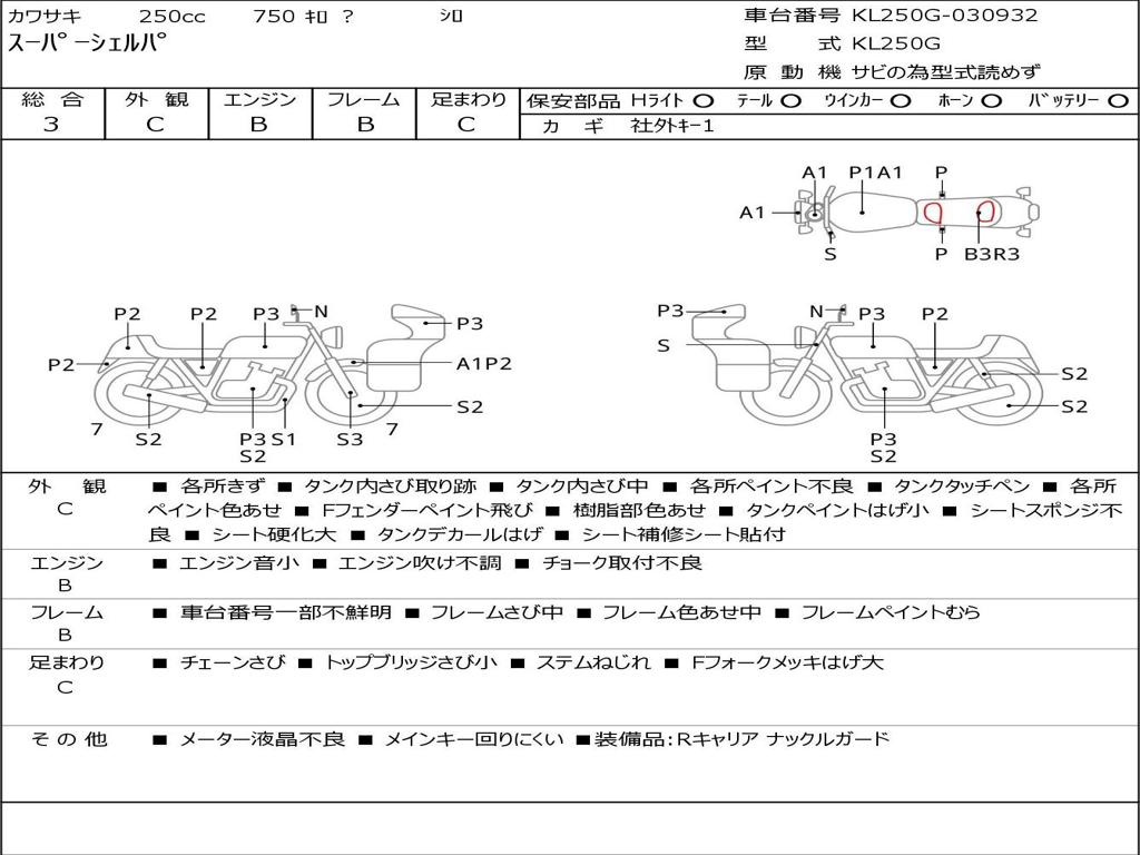 | Номер рамы / VIN | KL250G-030932 |