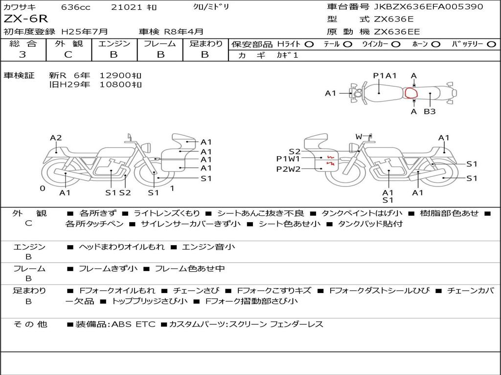 | Номер рамы / VIN | JKBZX636EFA005390 |