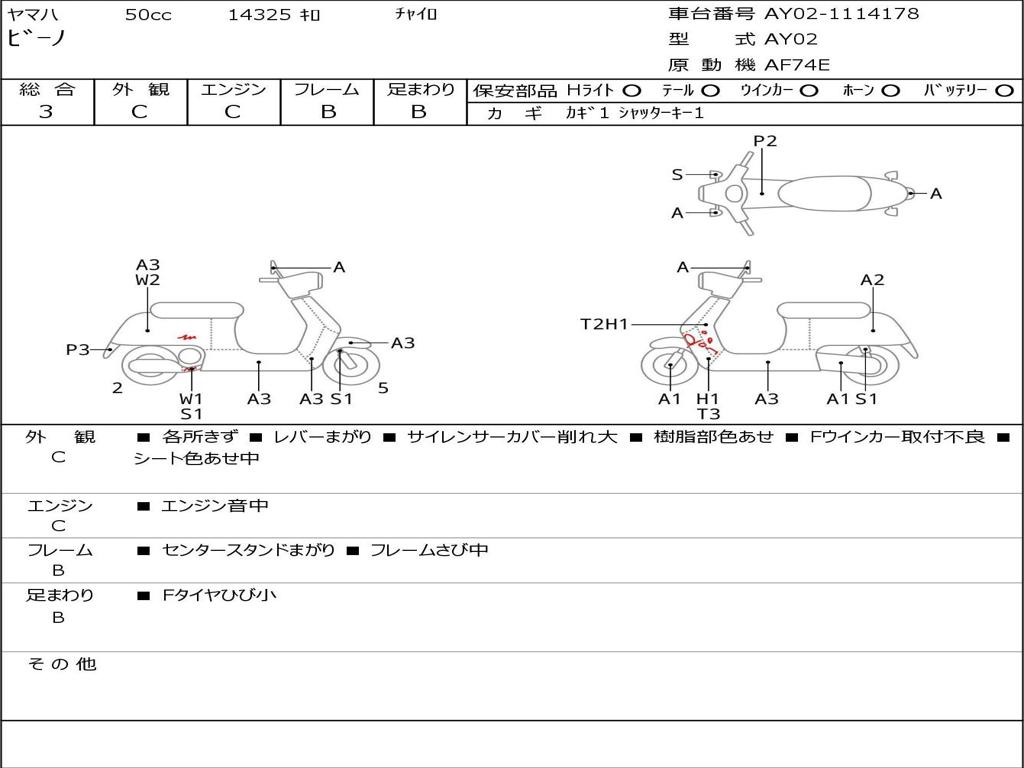 | Номер рамы / VIN | AY02-1114178 |