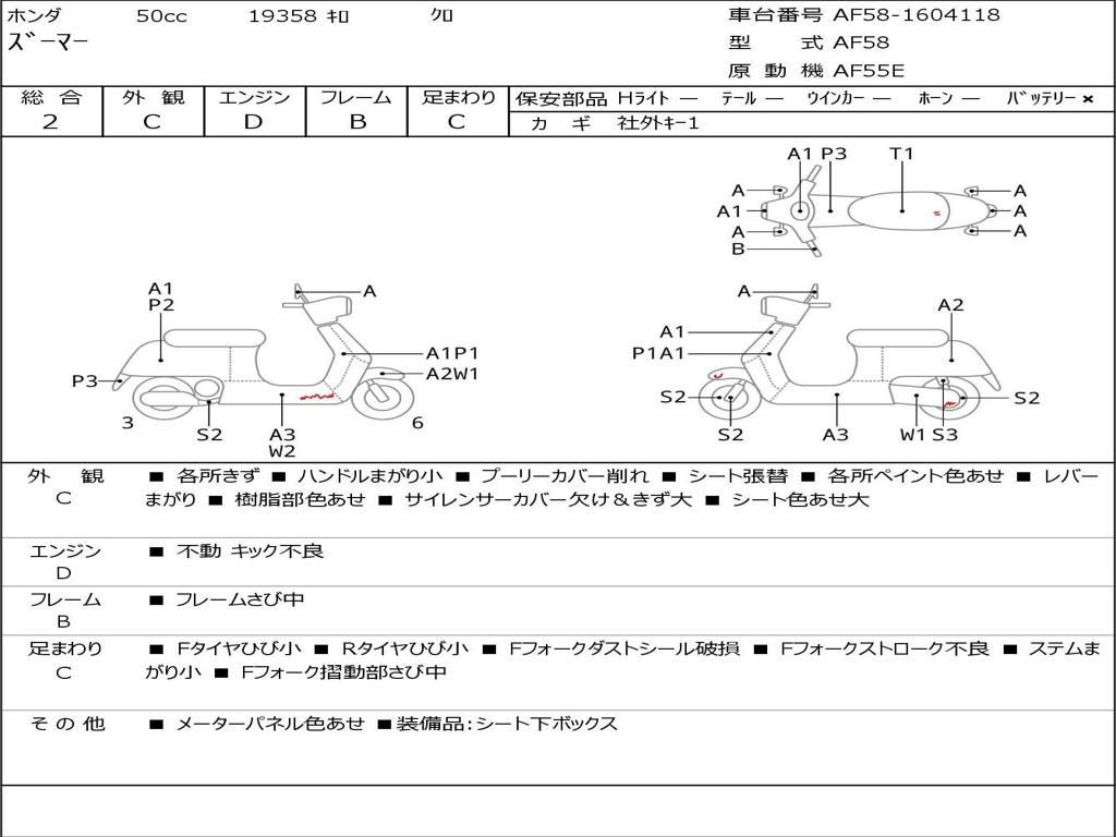 | Номер рамы / VIN | AF58-1604118 |