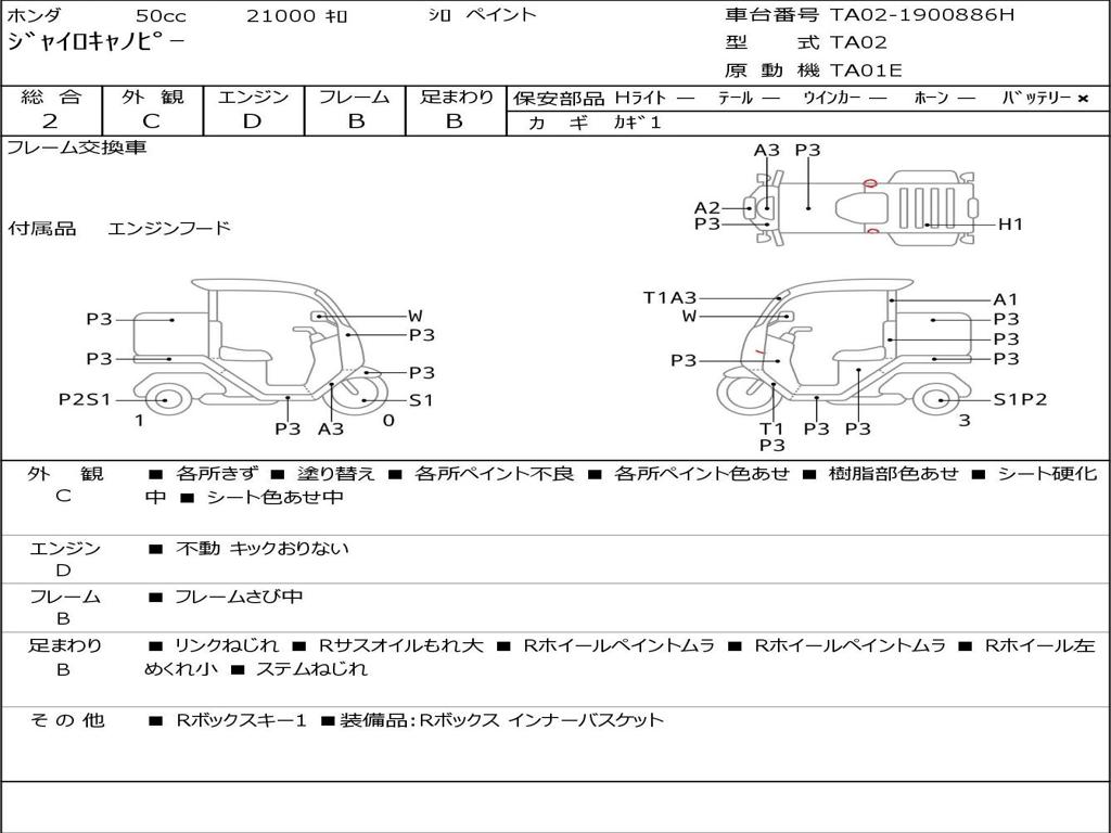 | Номер рамы / VIN | TA02-1900886H |