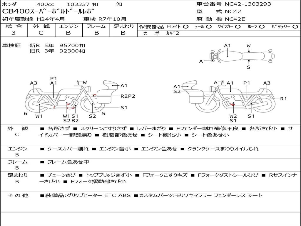 | Номер рамы / VIN | NC42-1303293 |