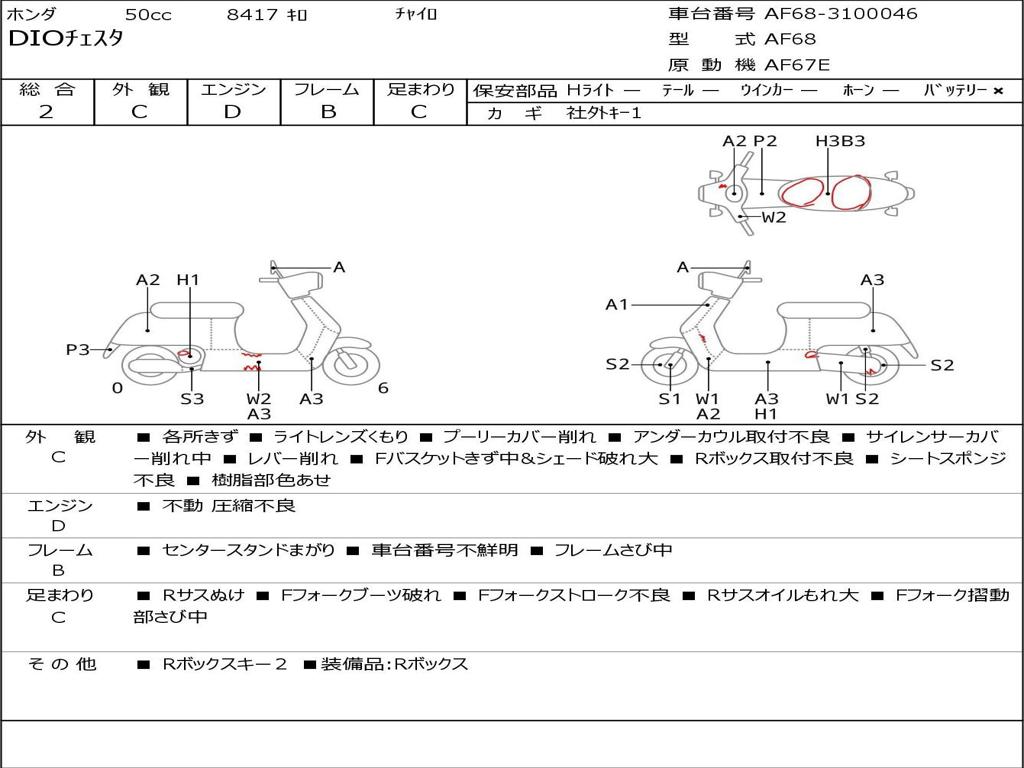 | Номер рамы / VIN | AF68-3100046 |