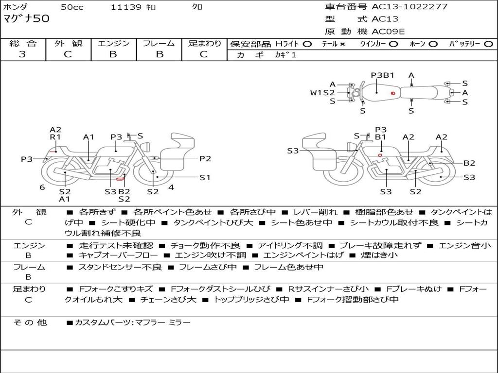 | Номер рамы / VIN | AC13-1022277 |
