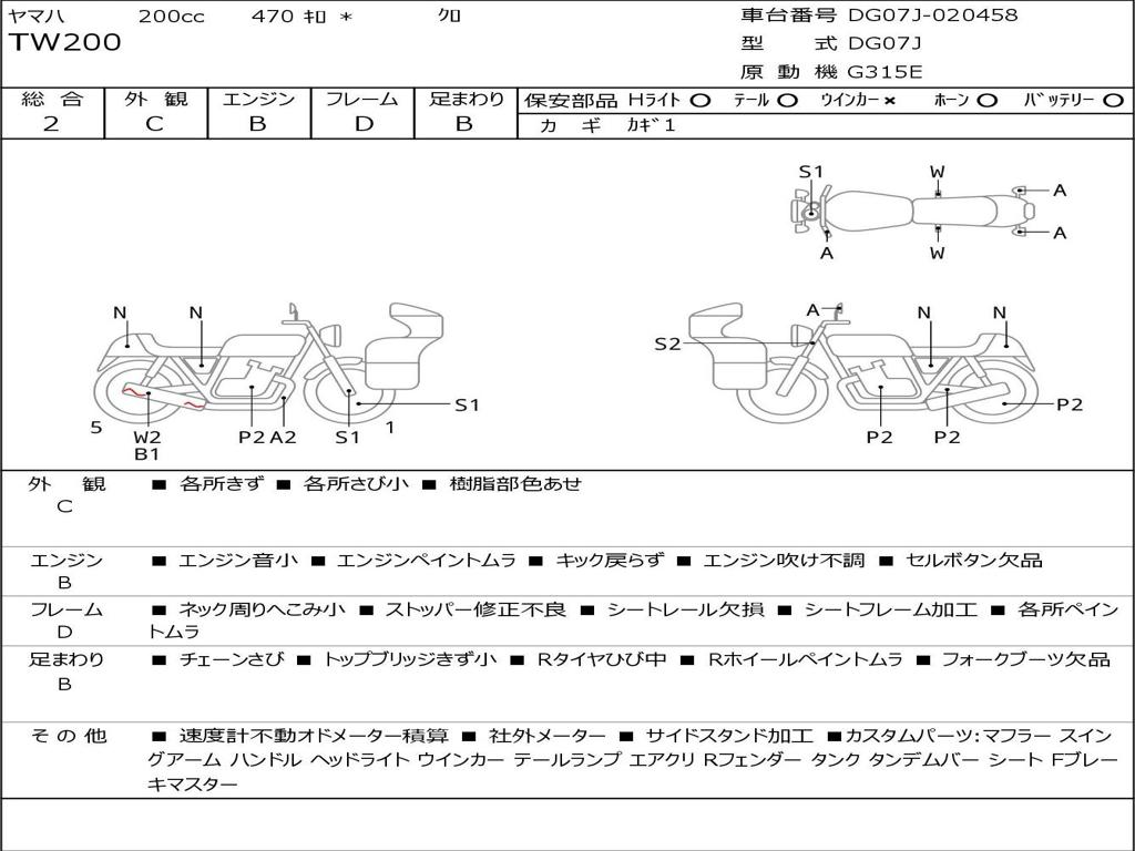 | Номер рамы / VIN | DG07J-020458 |