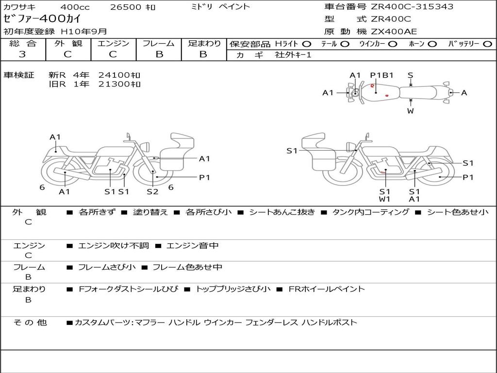 | Номер рамы / VIN | ZR400C-315343 |