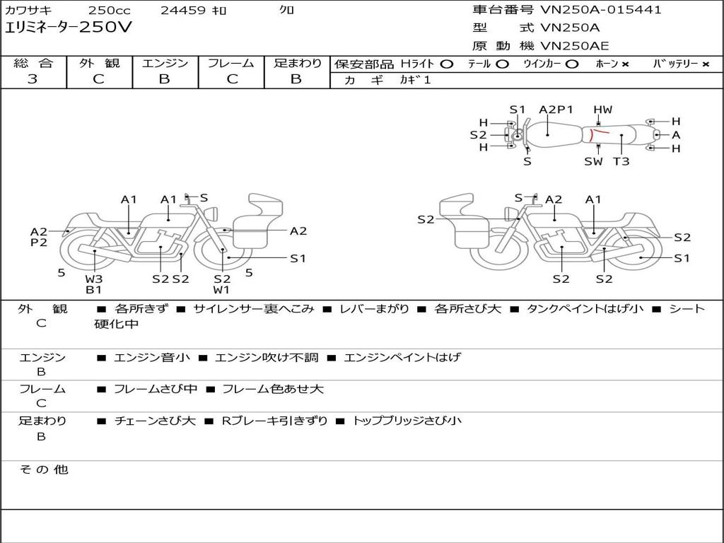 | Номер рамы / VIN | VN250A-015441 |