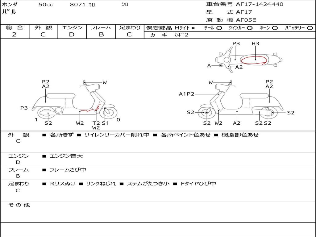 | Номер рамы / VIN | AF17-1424440 |