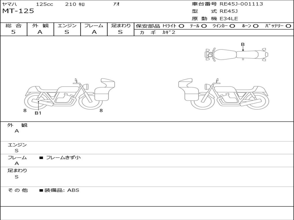 | Номер рамы / VIN | RE45J-001113 |