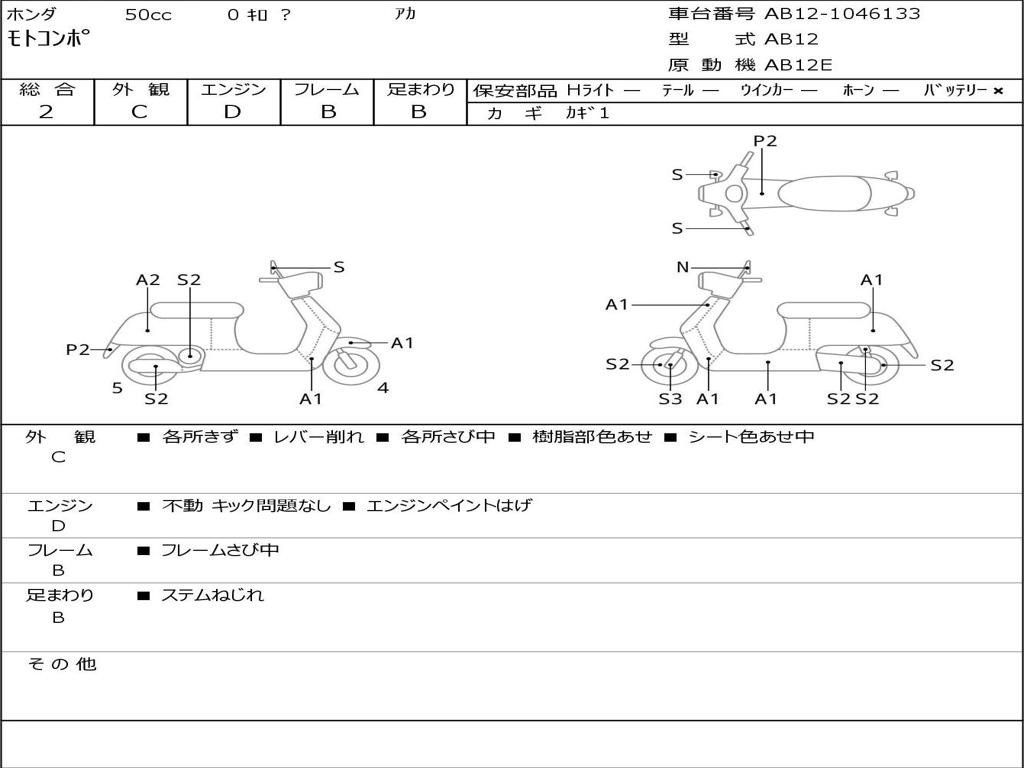 | Номер рамы / VIN | AB12-1046133 |