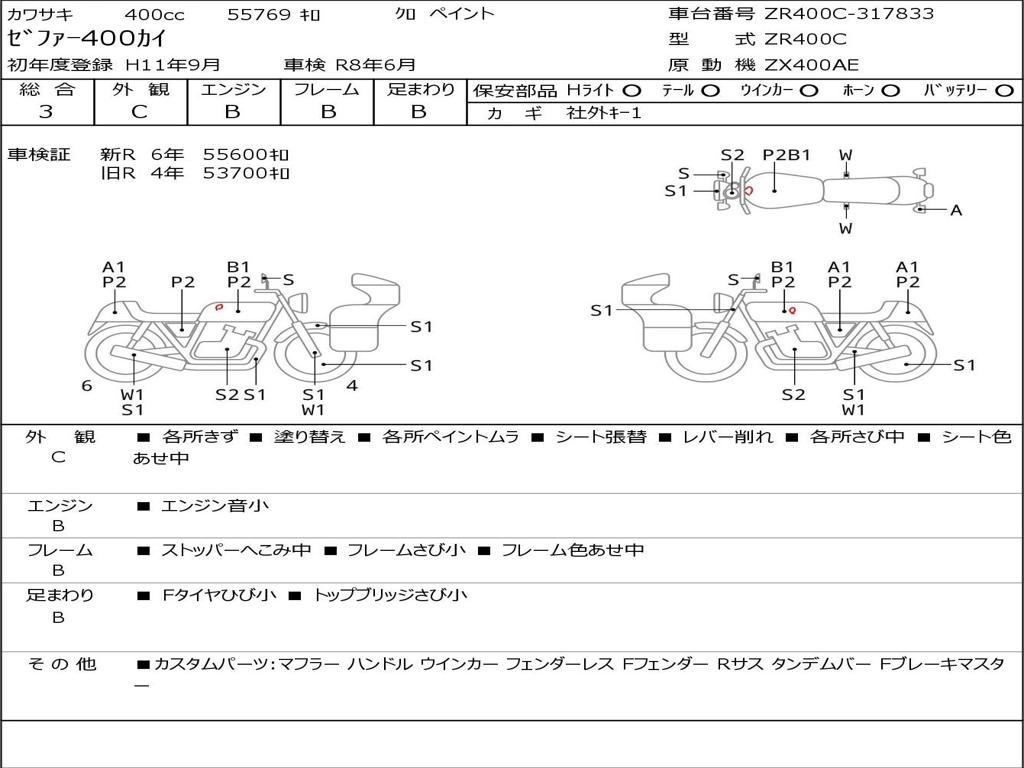 | Номер рамы / VIN | ZR400C-317833 |