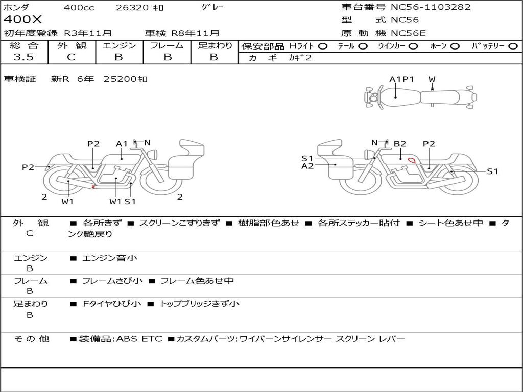 | Номер рамы / VIN | NC56-1103282 |
