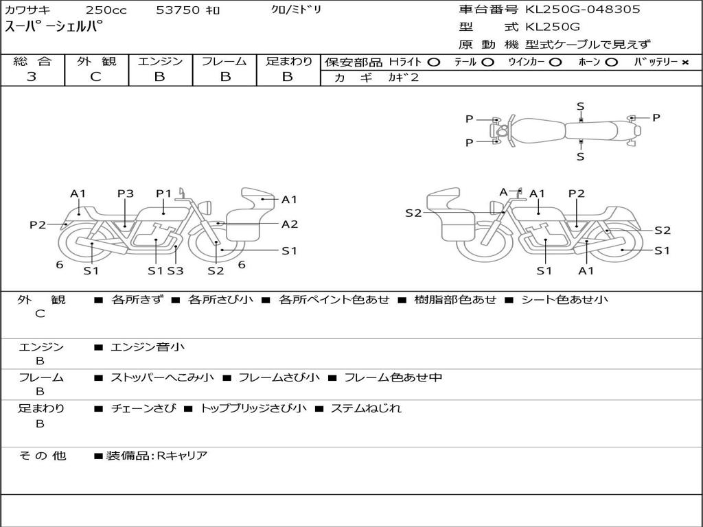 | Номер рамы / VIN | KL250G-048305 |