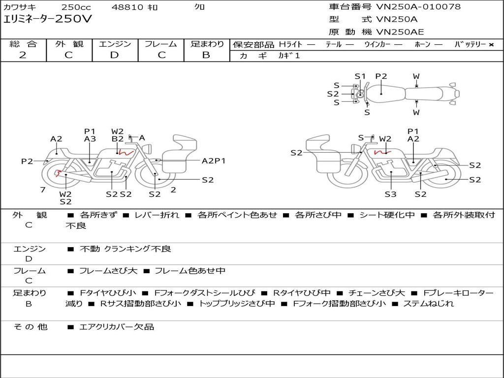 | Номер рамы / VIN | VN250A-010078 |