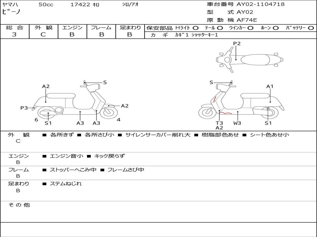 | Номер рамы / VIN | AY02-1104718 |