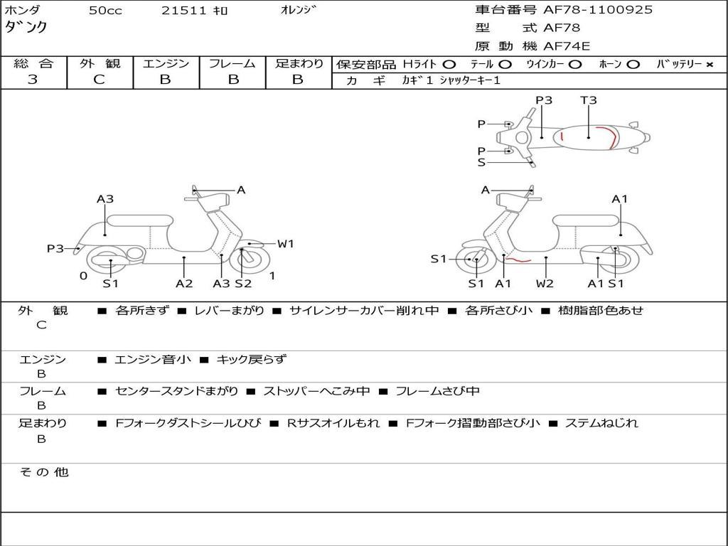 | Номер рамы / VIN | AF78-1100925 |