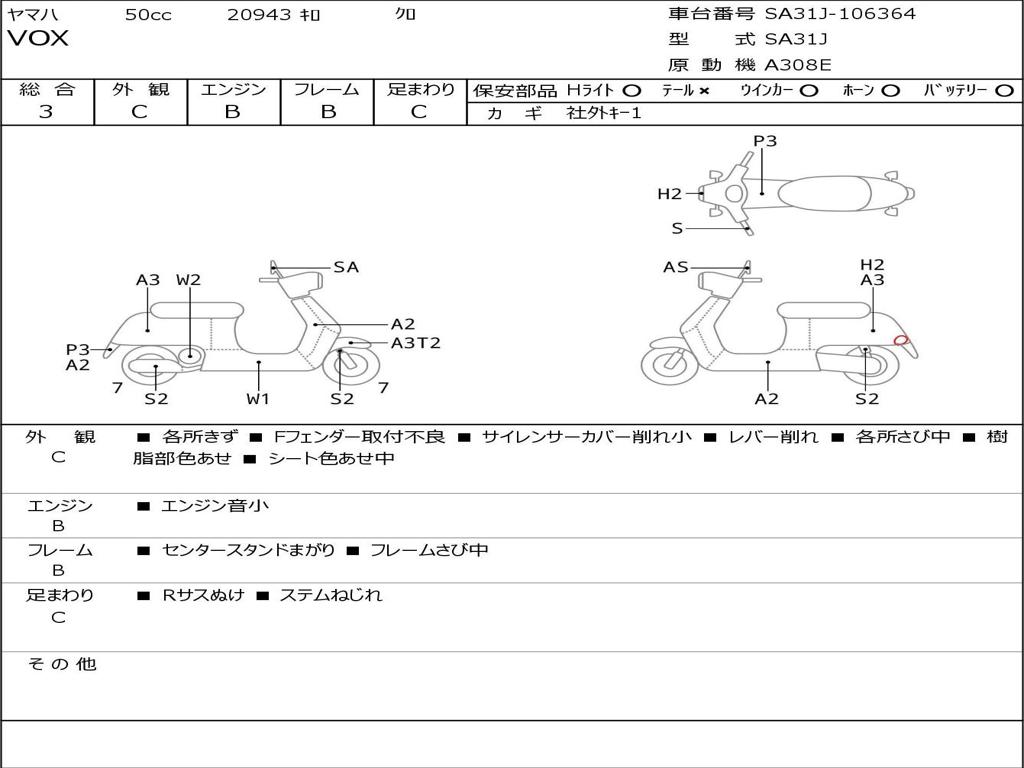 | Номер рамы / VIN | SA31J-106364 |