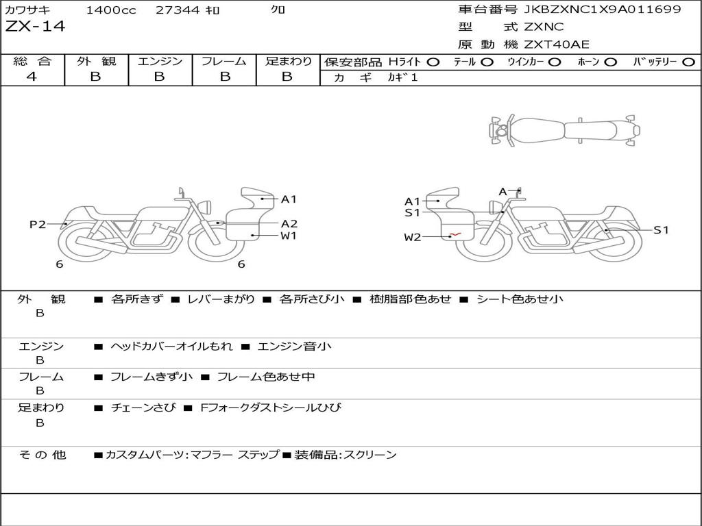 | Номер рамы / VIN | JKBZXNC1X9A011699 |