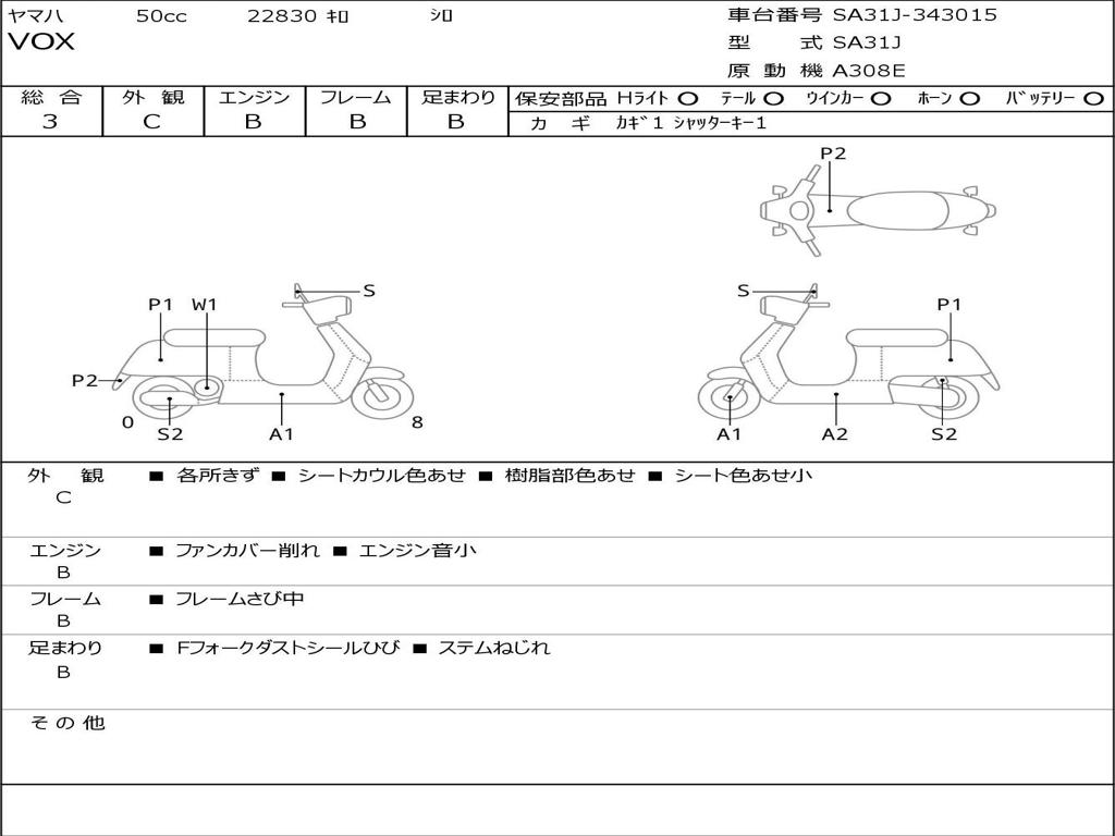 | Номер рамы / VIN | SA31J-343015 |