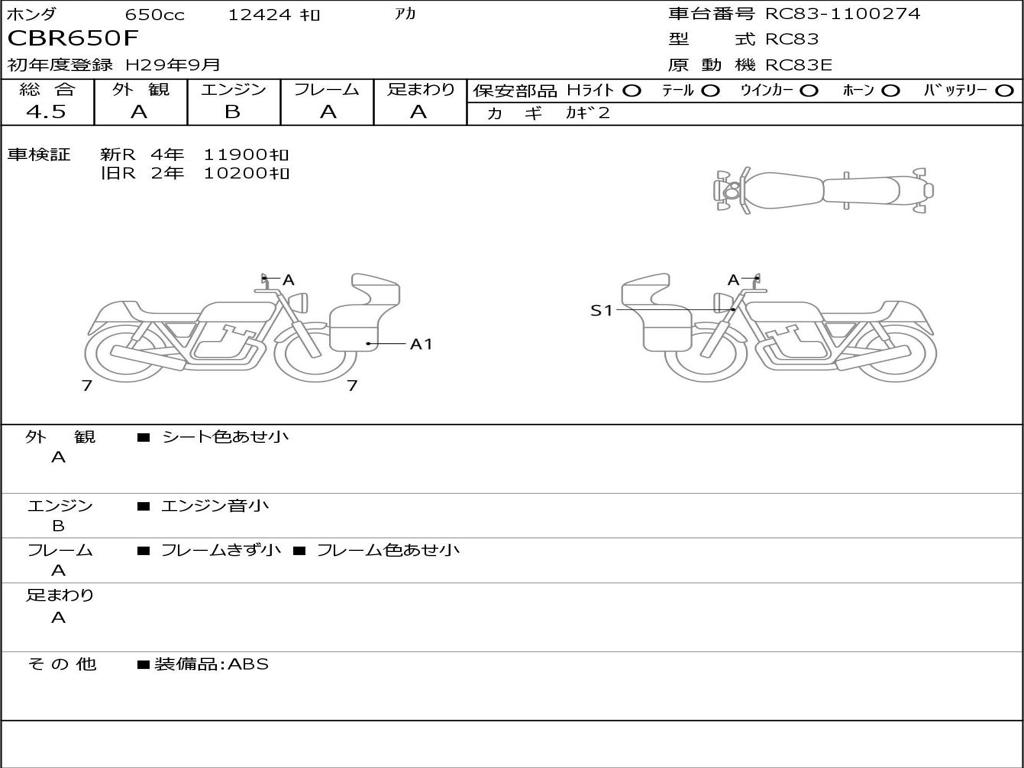 | Номер рамы / VIN | RC83-1100274 |
