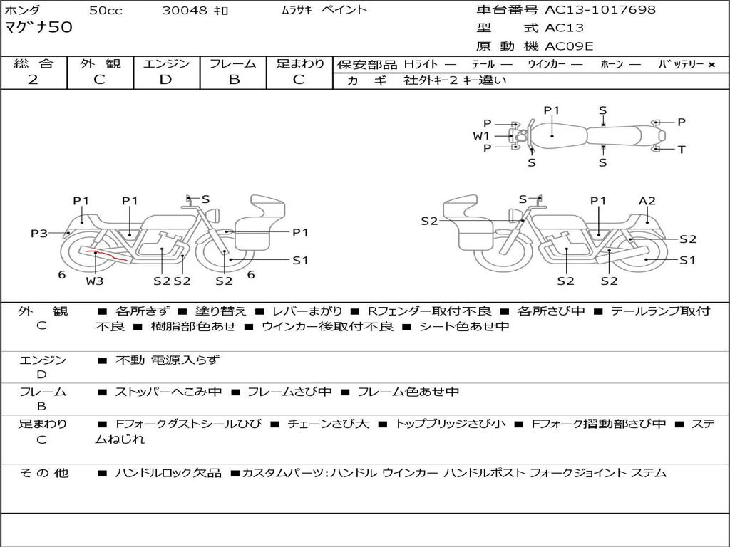 | Номер рамы / VIN | AC13-1017698 |