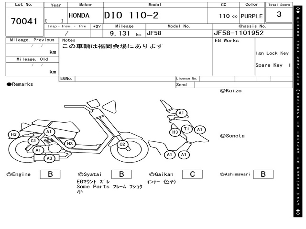 | Номер рамы / VIN | JF58-1101952 |