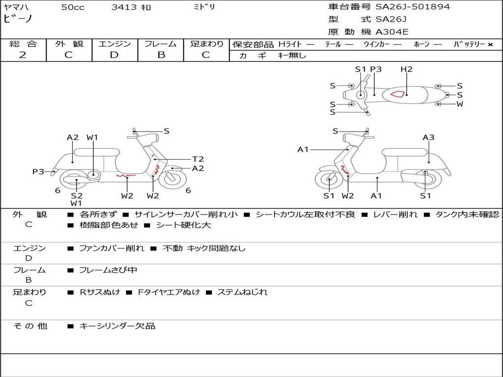 | Номер рамы / VIN | SA26J-501894 |