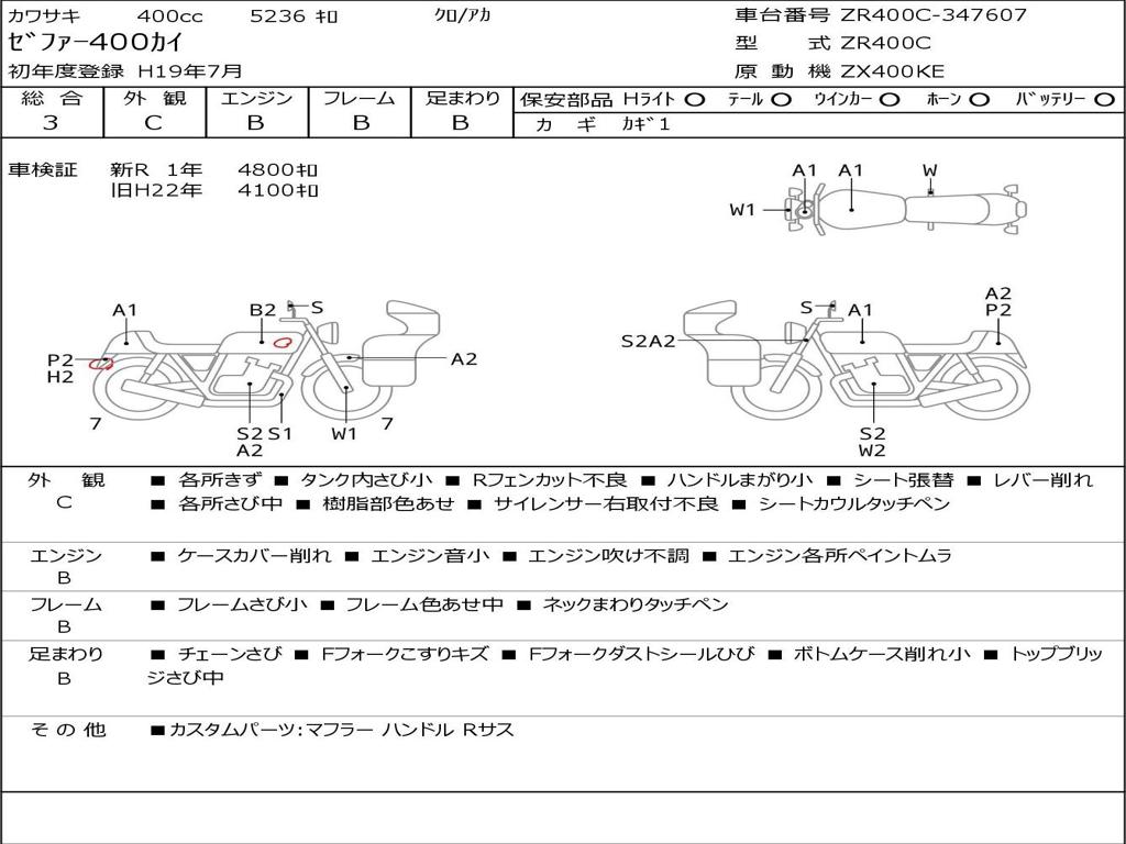 | Номер рамы / VIN | ZR400C-347607 |