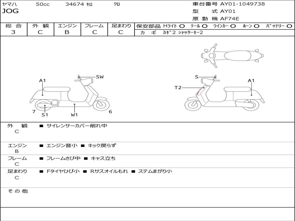 | Номер рамы / VIN | AY01-1049738 |