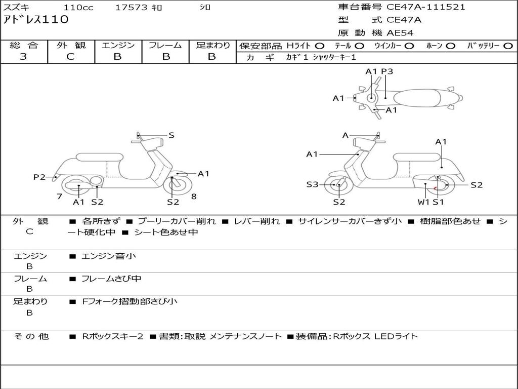 | Номер рамы / VIN | CE47A-111521 |