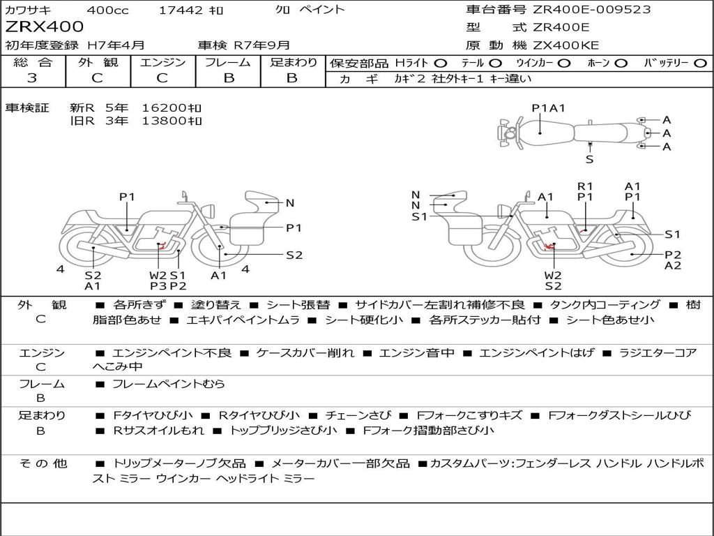 | Номер рамы / VIN | ZR400E-009523 |